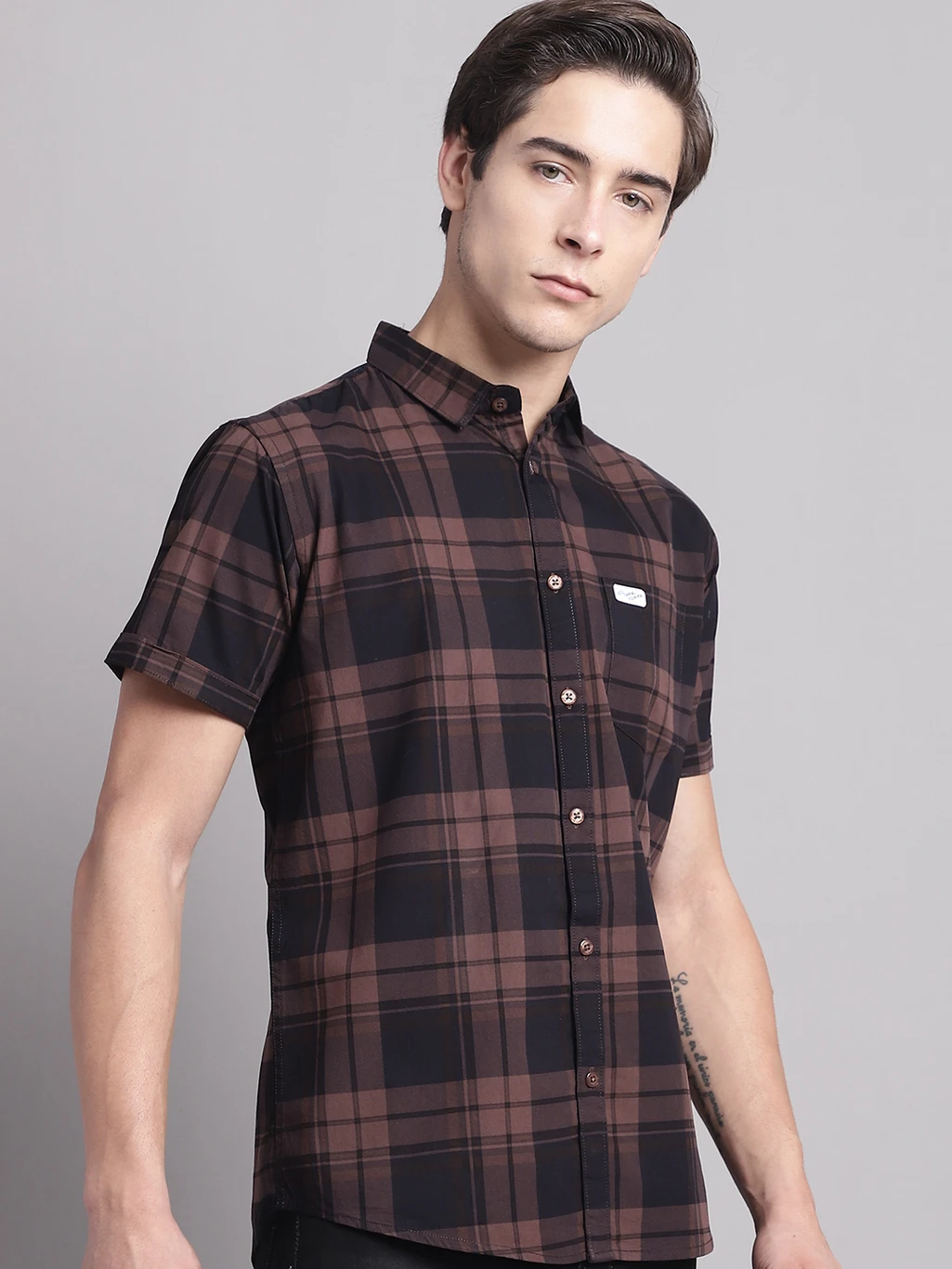 - The checkered pattern is a classic and timeless look that will never go out of style. This stylish shirt with collar has a spread collar and Half sleeves.